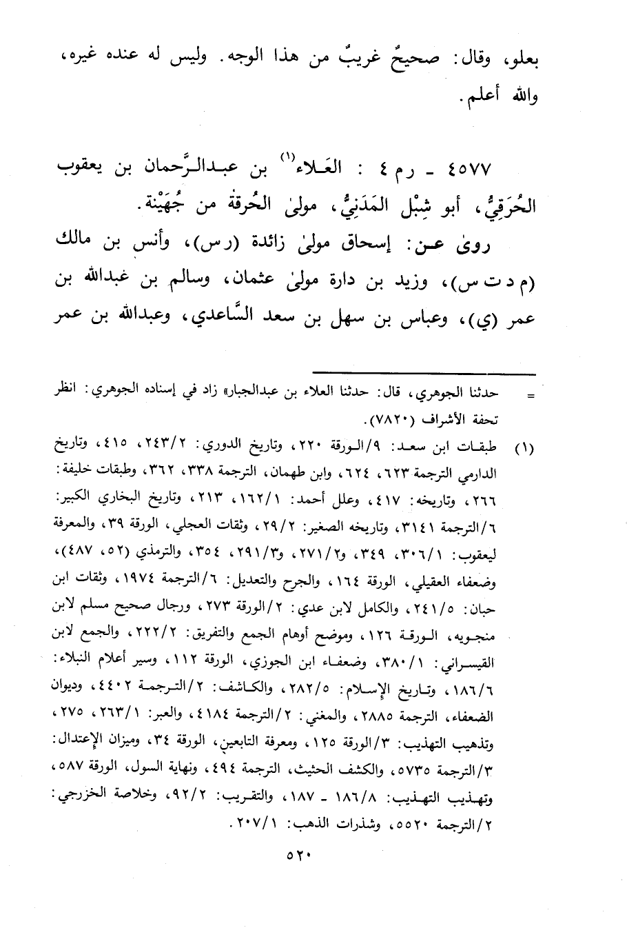 4577 - ر م 4: العلاء بن عبد الرحمن بن يعقوب الحرقي (1) ، أَبُو شبل المدني، مولى الحرقة من جهينة.