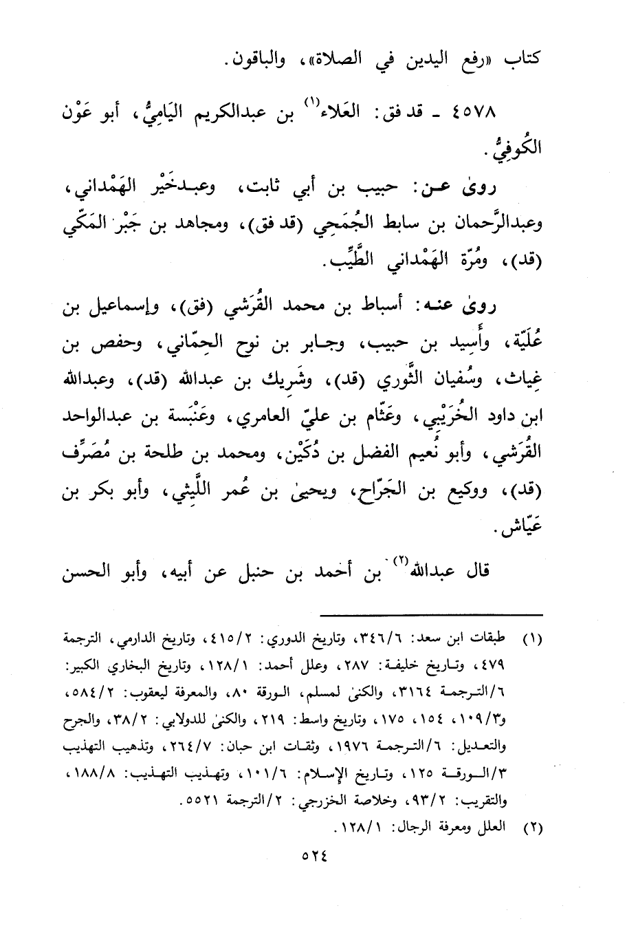 4578 - قد فق: العلاء بن عَبْد الكريم اليامي (1) ، أَبُو عون الكوفي.