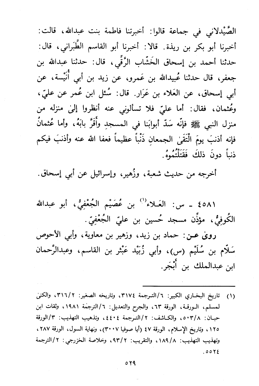 4581 - س: العلاء بن عصيم الجعفي (1) ، أَبُو عَبْد اللَّه الكوفي، مؤذن مسجد حسين بْن عَلِيّ الجعفي.