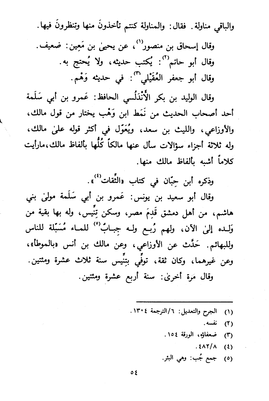 (1) الجرح والتعديل: 6 / الترجمة 1304.