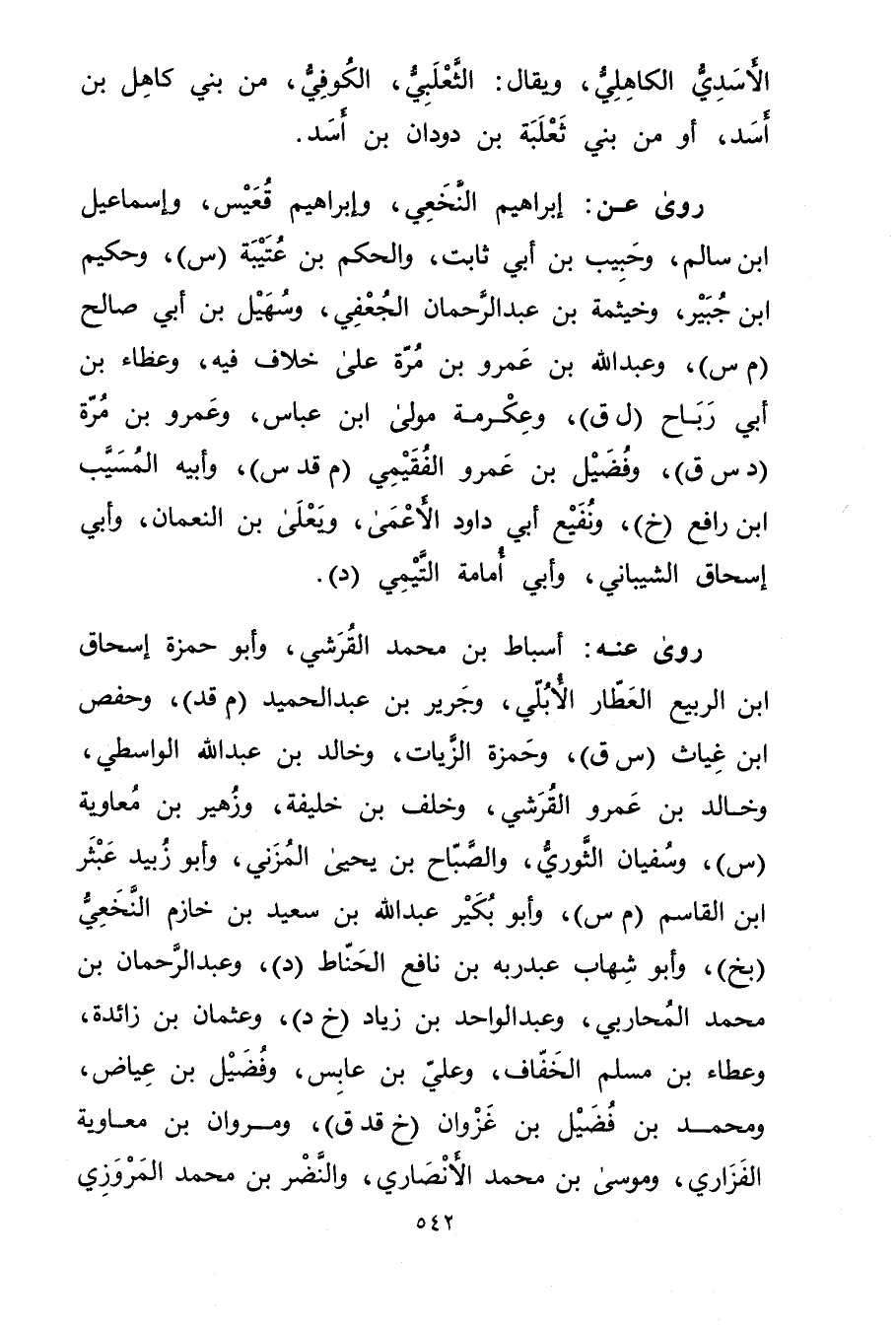 الأسدي الكاهلي، ويُقال: الثعلبي، الكوفي، من بني كاهل بْن أسد، أو من بني ثعلبة بْن دودان بْن أسد.