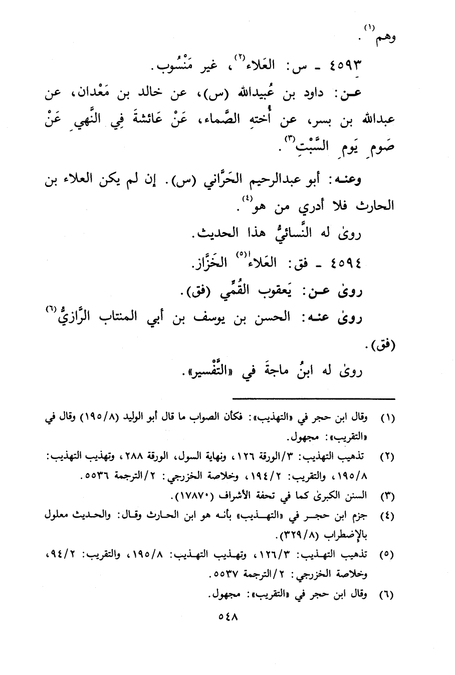 (2) تذهيب التهذيب 3 / الورقة 126، ونهاية السول، الورقة 288، وتهذيب التهذيب: 8 / 195، والتقريب: 2 / 194، وخلاصة الخزرجي: 2 / الترجمة 5536.