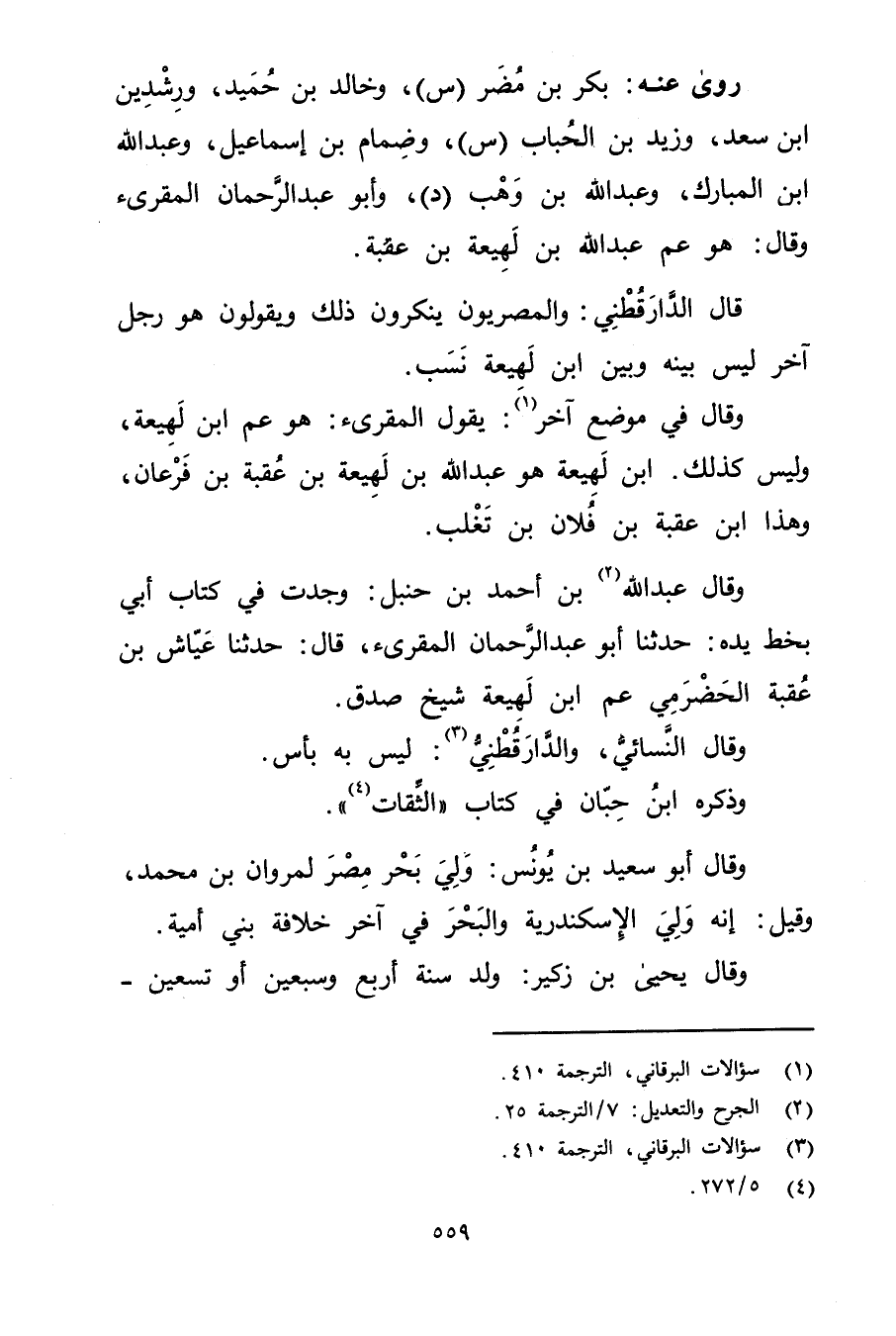 قال الدارقطني: والمِصْرِيون ينكرون ذلك ويقولون هو رجل آخر ليس بينه وبين ابْن لَهِيعَة نسب.