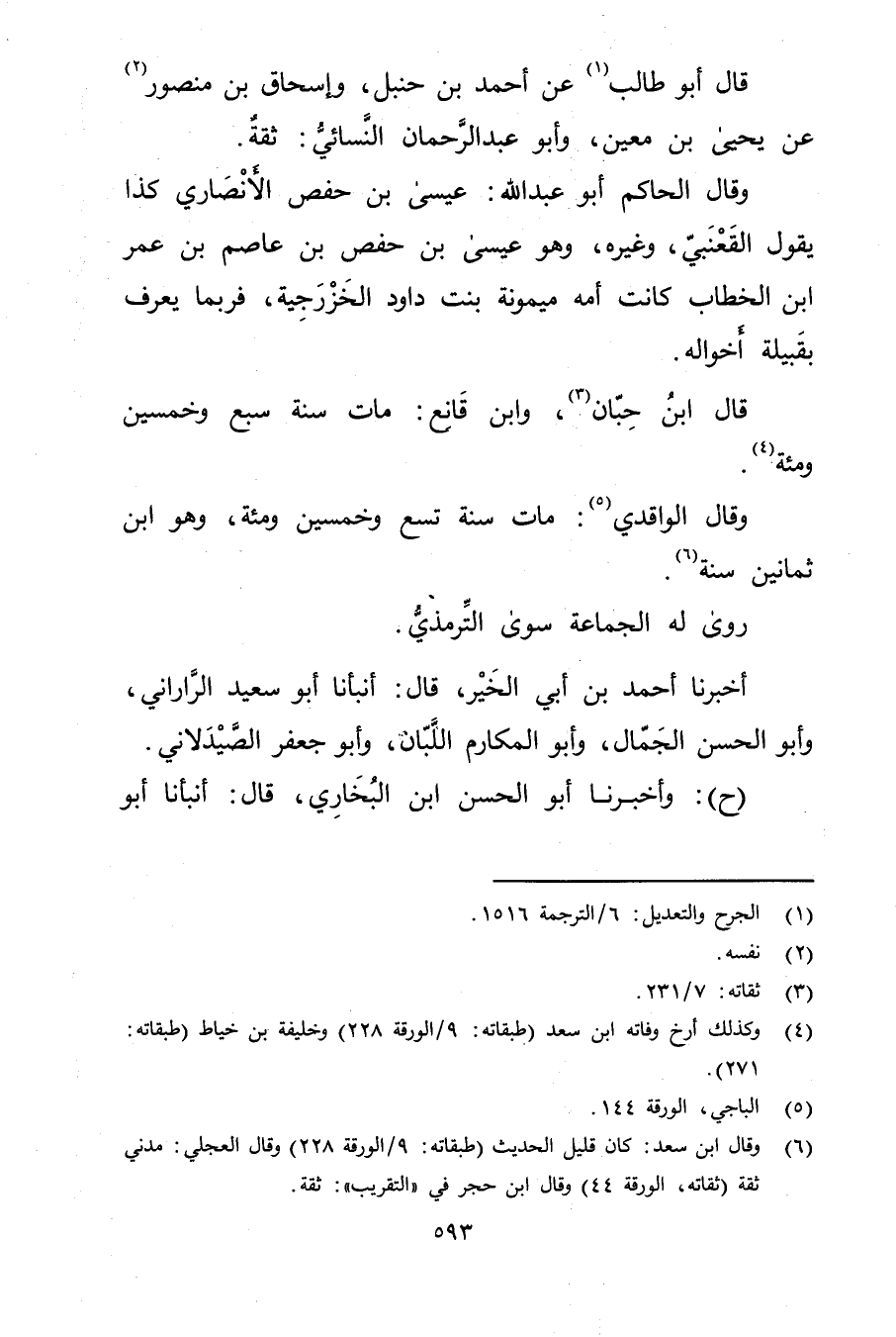 (6) وَقَال ابن سعد: كان قليل الحديث (طبقاته: 9 / الورقة 228) وَقَال العجلي: مدني ثقة (ثقاته، الورقة 44) وَقَال ابن حجر في "التقريب": ثقة.