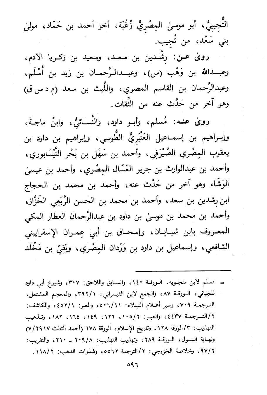= مسلم لابن منجويه، الورقة 140، والسابق واللاحق: 307، وشيوخ أبي داود للجياني، الورقة 87، والجمع لابن القيسراني: 1 / 392، والمعجم المشتمل، الترجمة 709، وسير أعلام النبلاء 11 / 506، والعبر: 1 / 452، والكاشف: 2 / الترجمة 4437، والعبر: 2 / 105، 126، 149، 164، 182، وتذهيب التهذيب: 3 / الورقة 128، وتاريخ الاسلام، الورقة 178 (أحمد الثالث 2917 / 7) ونهاية السول، الورقة 289، وتهذيب التهذيب: 8 / 209 - 210، والتقريب: 2 / 97، وخلاصة الخزرجي: 2 / الترجمة 5562، وشذرات الذهب: 2 / 118.