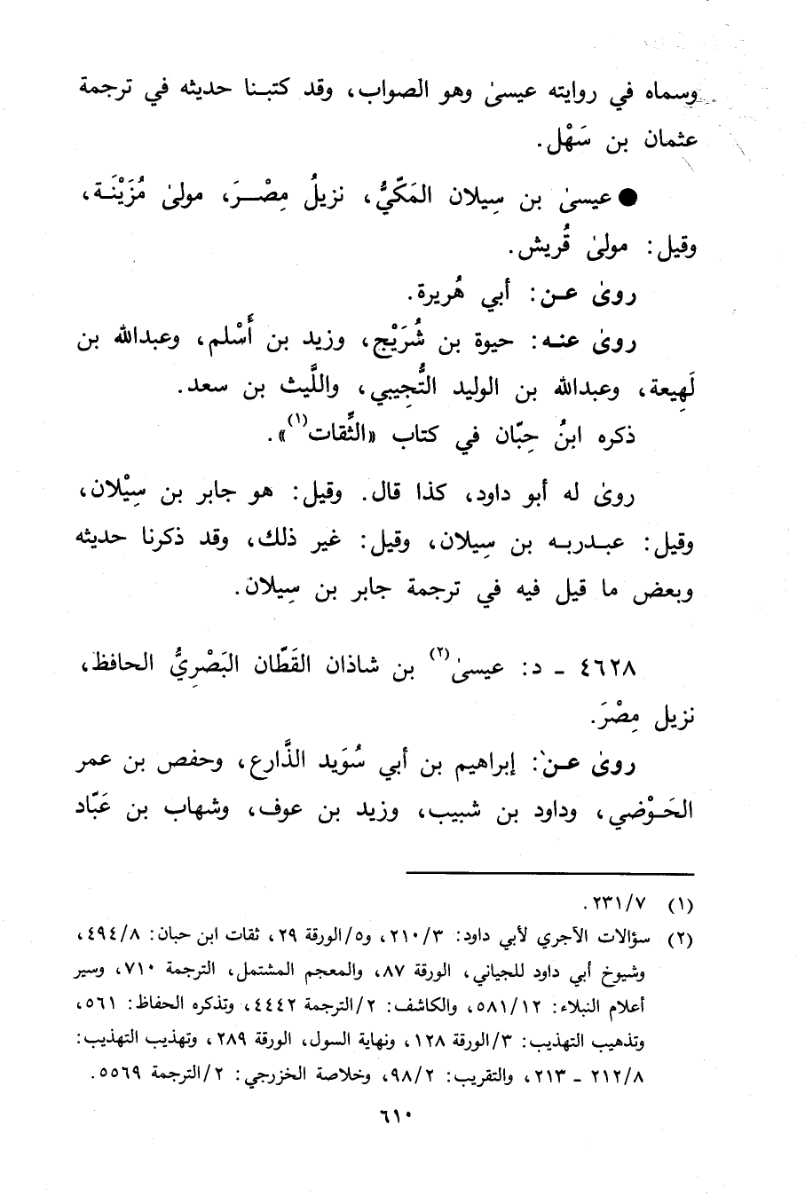 4628 - د: عيسى بن شاذان القطان البَصْرِيّ الحافظ (2) ، نزيل مصر.