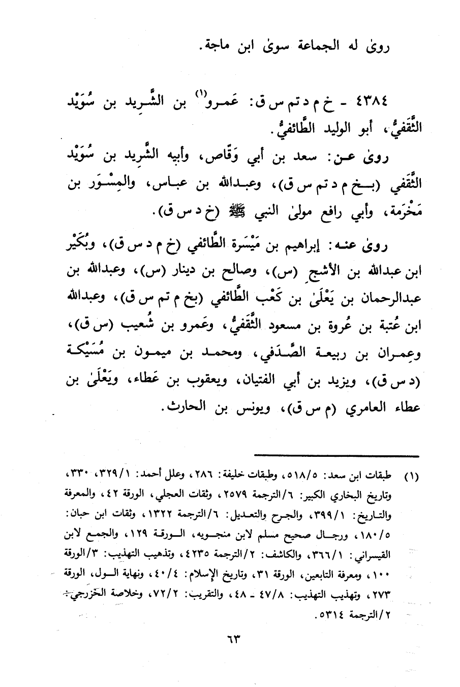 4384 - خ م د تم س ق: عَمْرو بن الشريد بن سويد الثقفي (1) ، أبو الوليد الطائفي.