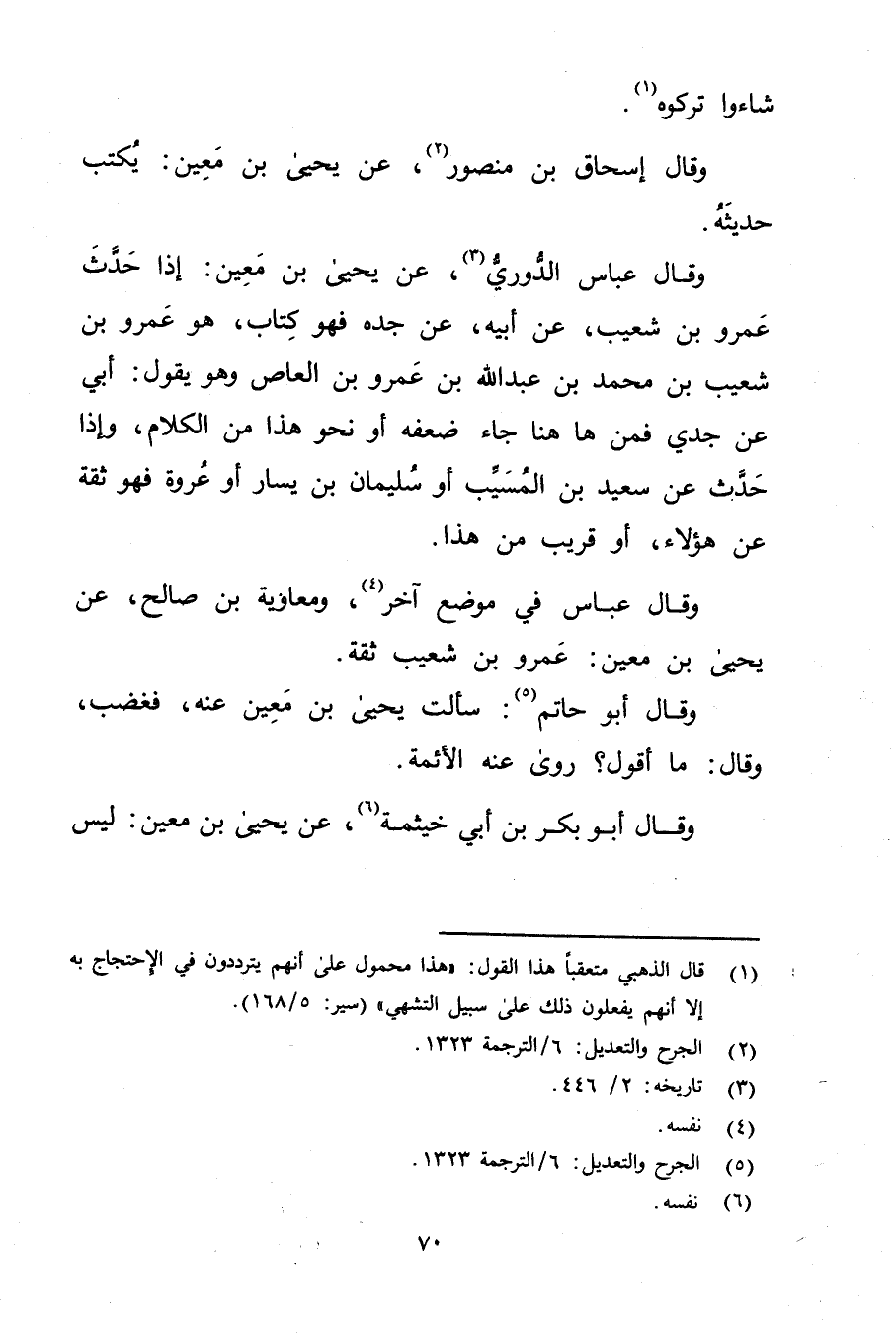 (1) قال الذهبي متعقبا هذا القول: "هذا محمول على أنهم يترددون في الاحتجاج به إلا أنهم يفعلون ذلك على سبيل التشهي " (سير: 5 / 168) .