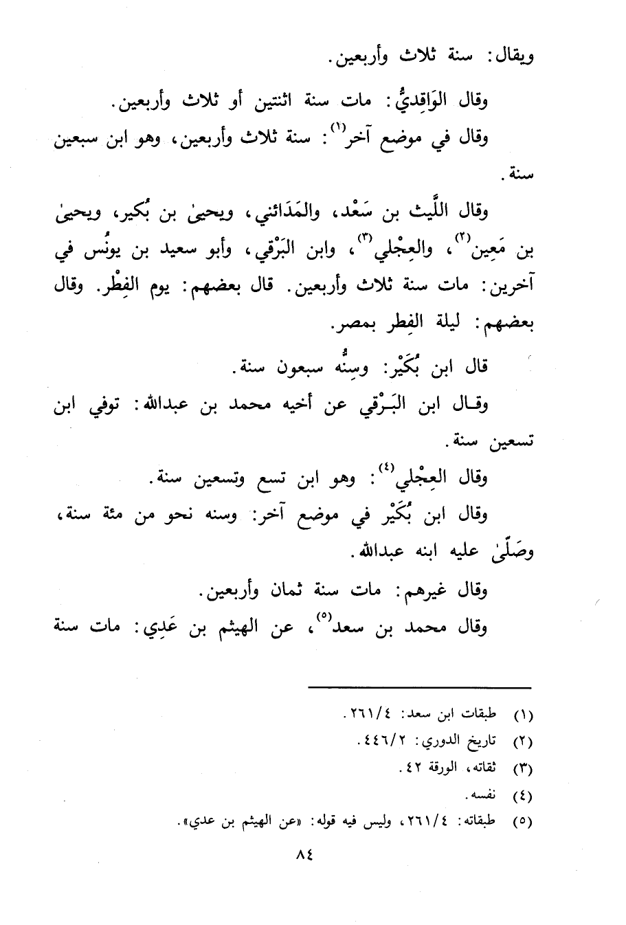 (5) طبقاته: 4 / 261، وليس فيه قوله: "عن الهيثم بن عدي ".
