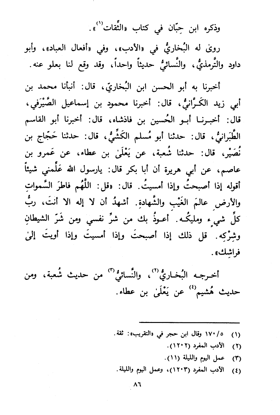 (4) الادب المفرد (1203) ، وعمل اليوم والليلة.