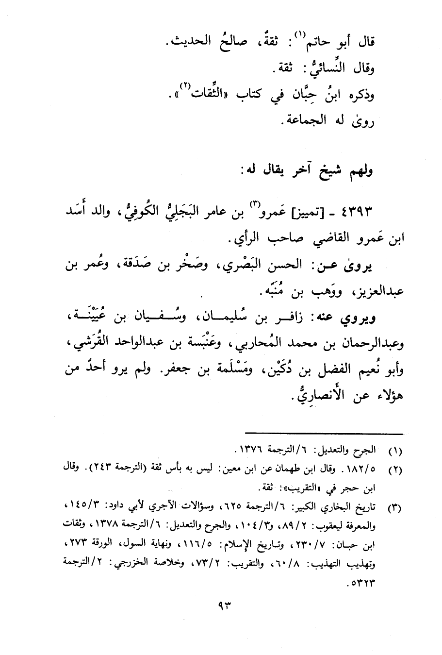 4393 - تمييز عَمْروبن عامر البجلي الكوفي (3) ، والد أسد ابن عَمْرو القاضي صاحب الرأي.
