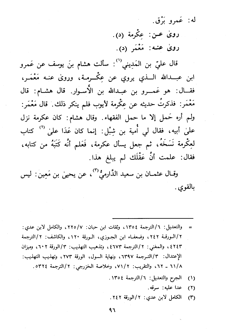 = والتعديل: 6 / الترجمة 1354، وثقات ابن حبان: 7 / 225، والكامل لابن عدي: 2 / الورقة 242، وضعفاء ابن الجوزي، الورقة 120، والكاشف: 2 / الترجمة 4243، والمغني: 2 / الترجمة 4673، وتذهيب التهذيب: 3 / الورقة 602، وميزان الاعتدال: 3 / الترجمة 6397، ونهاية السول، الورقة 273، وتهذيب التهذيب: 8 / 61 - 62، والتقريب: 2 / 71، وخلاصة الخزرجي: 2 / الترجمة 5324.