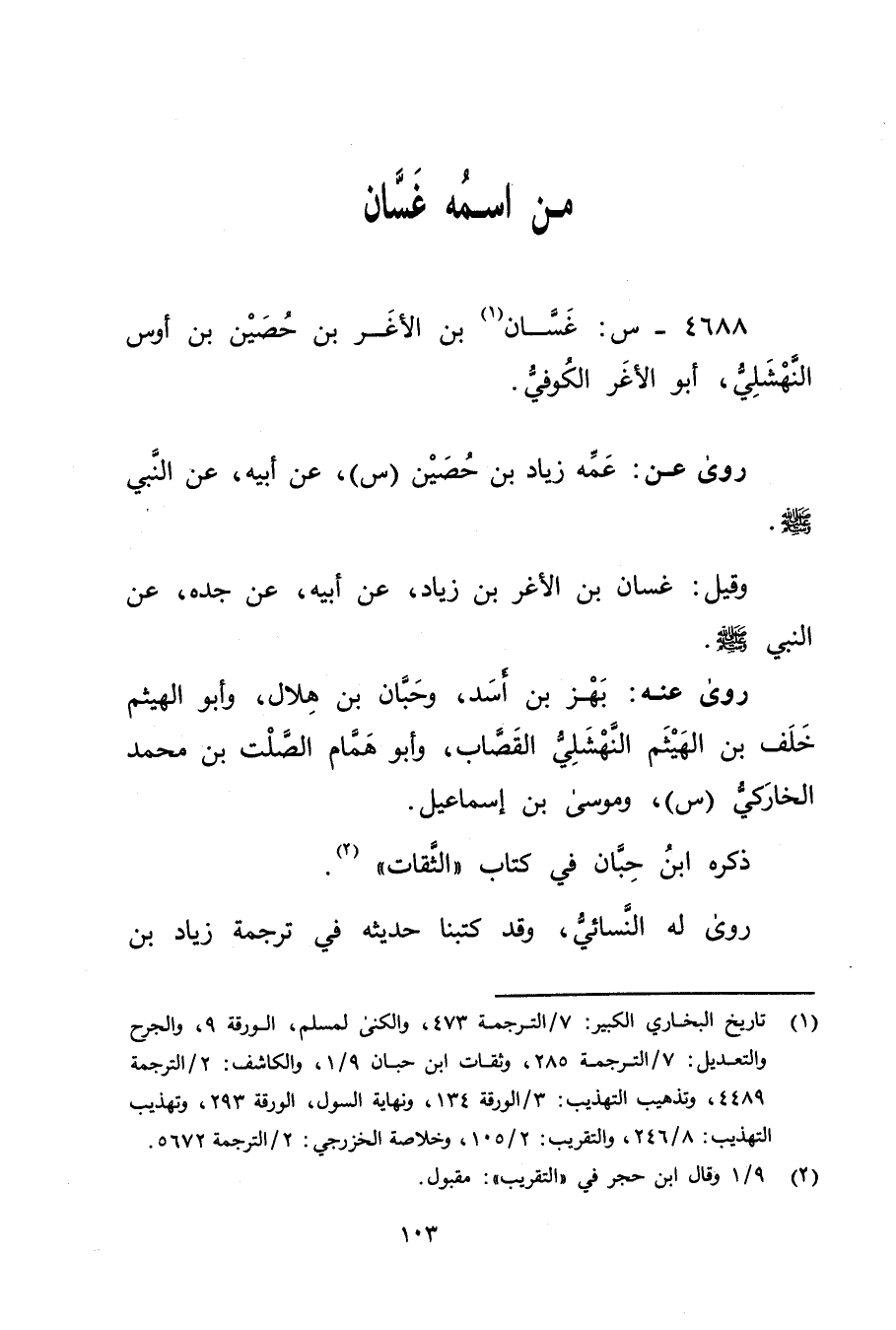 4688 - س: غسان بن الأَغَر بن حصين بن أوس النهشلي (1) ، أَبُو الأغر الكوفي.