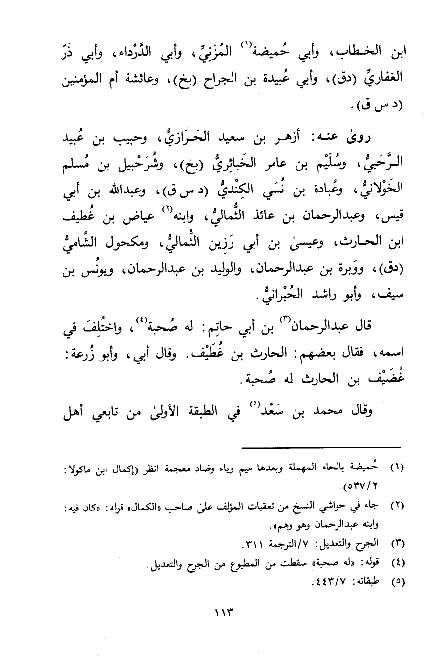 (2) جاء في حواشي النسخ من تعقبات المؤلف على صاحب (الكمال) قوله: (كان فيه: وابنه عبد الرحمن وهو وهم) .