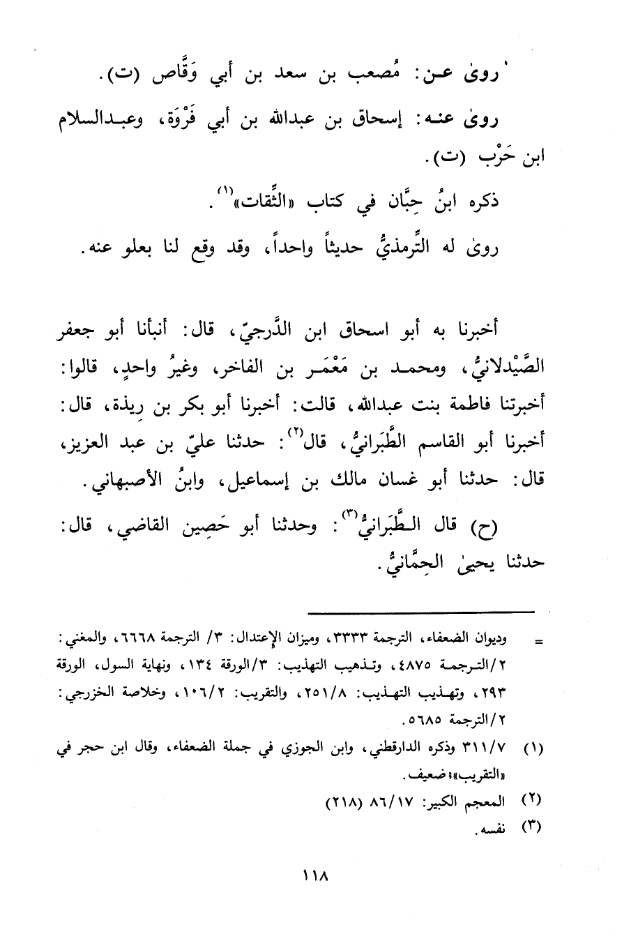 = وديوان الضعفاء، الترجمة 3333، وميزان الاعتدال: 3 / الترجمة 6668، والمغني: 2 / الترجمة 4875، وتذهيب التهذيب: 3 / الورقة 134، ونهاية السول، الورقة 293، وتهذيب التهذيب: 8 / 251، والتقريب: 2 / 106، وخلاصة الخزرجي: 2 / الترجمة 5685.