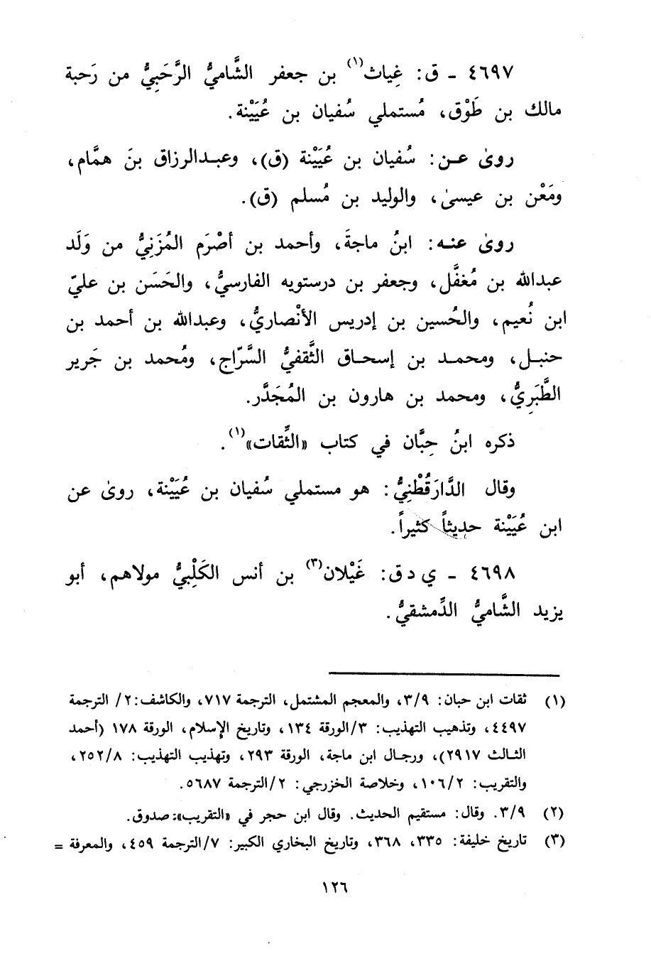 4697 - ق: غياث بن جَعْفَر الشامي الرحبي من رحبة مالك بْن طوق (1) ، مستملي سفيان بْن عُيَيْنَة.