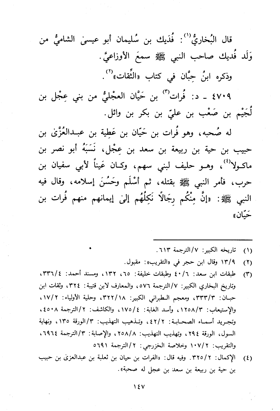 4709 - د: فرات بن حيان العجلي (3) من بني عجل بْن لجيم بْن صعب بْن علي بْن بكر بْن وائل.