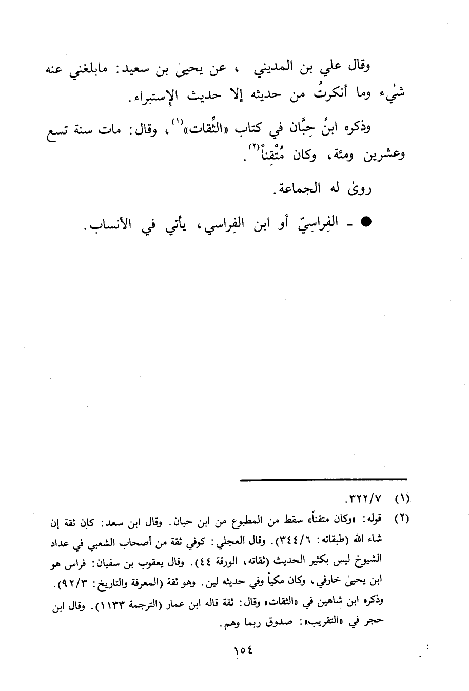 (2) قوله: (وكان متقنا) سقط من المطبوع من ابن حبان. وَقَال ابن سعد: كان ثقة إن شاء الله (طبقاته: 6 / 344) . وَقَال العجلي: كوفي ثقة من أصحاب الشعبي في عداد الشيوخ ليس بكثير الحديث (ثقاته، الورقة 44) . وَقَال يعقوب بن سفيان: فراس هو ابن يحيى خارفي، وكان مكيا وفي حديثه لين. وهو ثقة (المعرفة والتاريخ: 3 / 92) ، وذَكَره ابن شاهين في (الثقات) وَقَال: ثقة قاله ابن عمار (الترجمة 1133) . وَقَال ابن حجر في (التقريب) : صدوق ربما وهم.