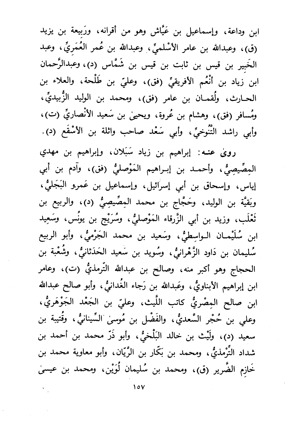 رَوَى عَنه: إِبْرَاهِيم بْن زياد سبلان، وإبراهيم بْن مهدي المصيصي، وأحمد بْن إِبْرَاهِيم الموصلي (فق) ، وآدم بْن أَبي إياس، وإسحاق بْن أَبي إسرائيل، وإِسْمَاعِيل بْن عَمْرو البجلي، وبقية بْن الوليد، وحجاج بْن مُحَمَّد المصيصي (د) ، والربيع بْن ثعلب، وزيد بْن أَبي الزرقاء الموصلي، وسريج بْن يونس، وسَعِيد ابن سُلَيْمان الواسطي، وسَعِيد بْن مُحَمَّد الجرمي، وأبو الربيع سُلَيْمان بْن دَاوُدَ الزهراني، وسويد بْن سَعِيد الحدثاني، وشعبة بْن الحجاج وهو أكبر منه، وصالح بْن عَبد الله التِّرْمِذِيّ (ت) ، وعامر ابن إبراهيم الا بناوي، وعبد الله بْن رجاء الغداني، وأبو صالح عَبد الله بْن صالح المِصْرِي كاتب الليث، وعلي بْن الجعد الجوهري، وعلي بْن حجر السعدي، والفضل بْن مُوسَى السيناني، وقتيبة بْن سَعِيد (د) ، وليث بْن خالد البلخي، وأبو ذر مُحَمَّد بْن أَحْمَد بْن شداد التِّرْمِذِيّ، ومُحَمَّد بْن بكار بْن الريان، وأبو معاوية مُحَمَّد بْن خازم الضرير (ق) ، ومحمد بْن سُلَيْمان لوين، ومحمد بْن عيسى