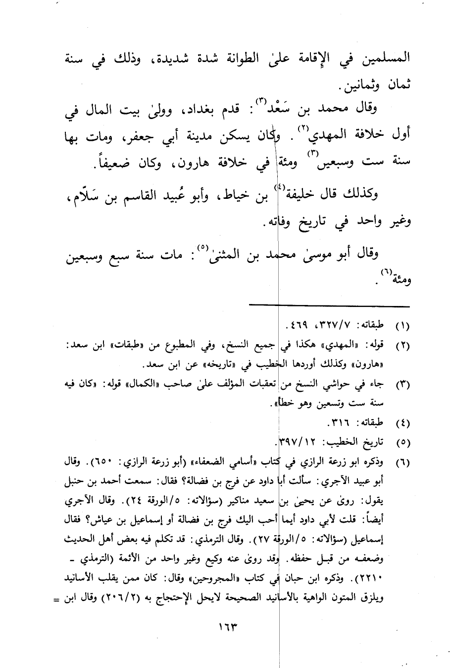 (2) قوله: (المهدي) هكذا في جميع النسخ، وفي المطبوع من (طبقات) ابن سعد: (هارون) وكذلك أوردها الخطيب في (تاريخه) عن ابن سعد.