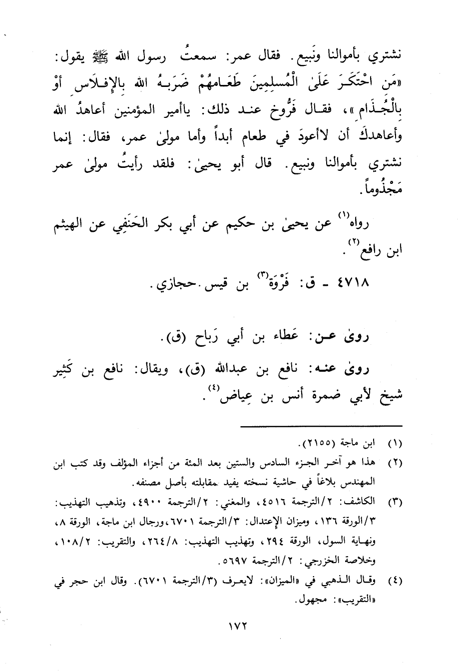 (3) الكاشف: 2 / الترجمة 4516، والمغني: 2 / الترجمة 4900، وتذهيب التهذيب: 3 / الورقة 136، وميزان الاعتدال: 3 / الترجمة 6701، ورجال ابن ماجة، الورقة 8، ونهاية السول، الورقة 294، وتهذيب التهذيب: 8 / 264، والتقريب: 2 / 108، وخلاصة الخزرجي: 2 / الترجمة 5697.