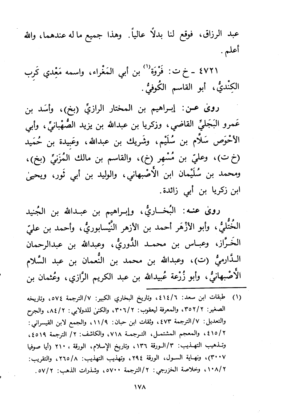 4721 - خ ت: فروة بن أَبي المغراء (1) ، واسمه مَعْدِي كَرِب الكندي، أَبُو الْقَاسِمِ الكوفي.