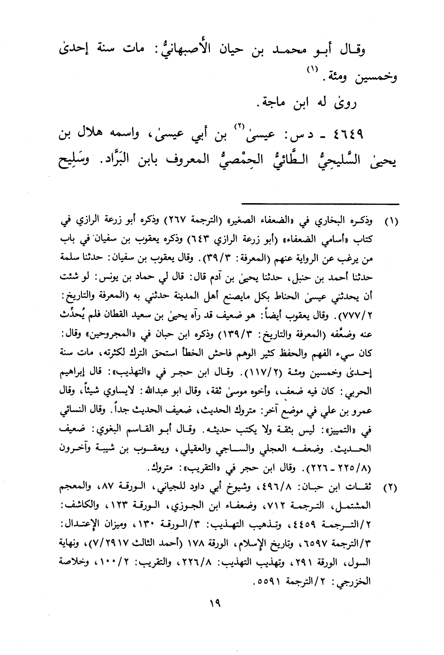 4649 - د س: عِيسَى بن أَبي عِيسَى (2) ، واسمه هلال بْن يَحْيَى السليحي الطائي الحمصي المعروف بابن البراد. وسليح