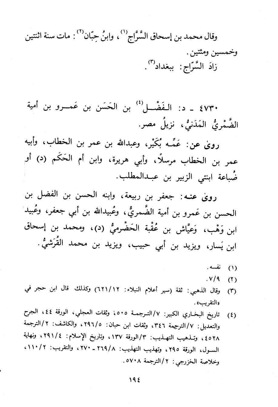 4730 - د: الفضل بن الحسن بن عَمْرو بن أمية الضمري المدني (4) ، نزيل مصر.