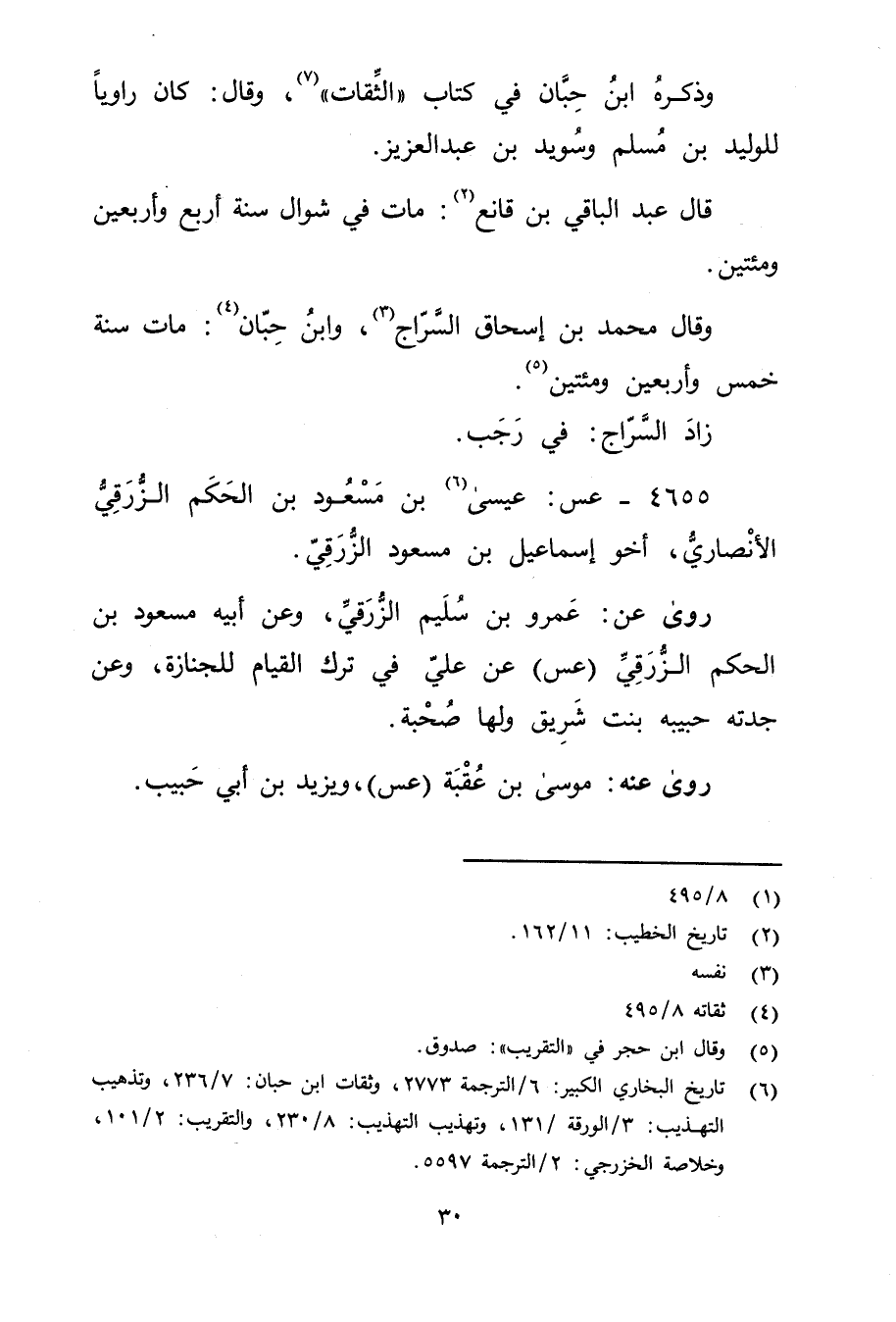 (6) تاريخ البخاري الكبير: 6 / الترجمة 2773، وثقات ابن حيان: 7 / 236، وتذهيب التهذيب: 3 / الورقة / 131، وتهذيب التهذيب: 8 / 230، والتقريب: 2 / 101، وخلاصة الخزرجي: 2 / الترجمة 5597.
