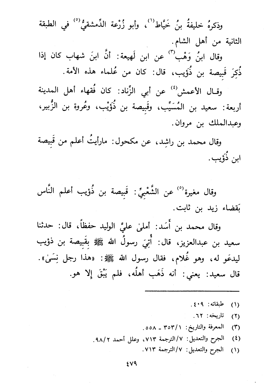 وَقَال مغيرة (5) عَنِ الشعبي: قبيصة بْن ذؤيب أعلم الناس بقضاء زيد بْن ثابت.