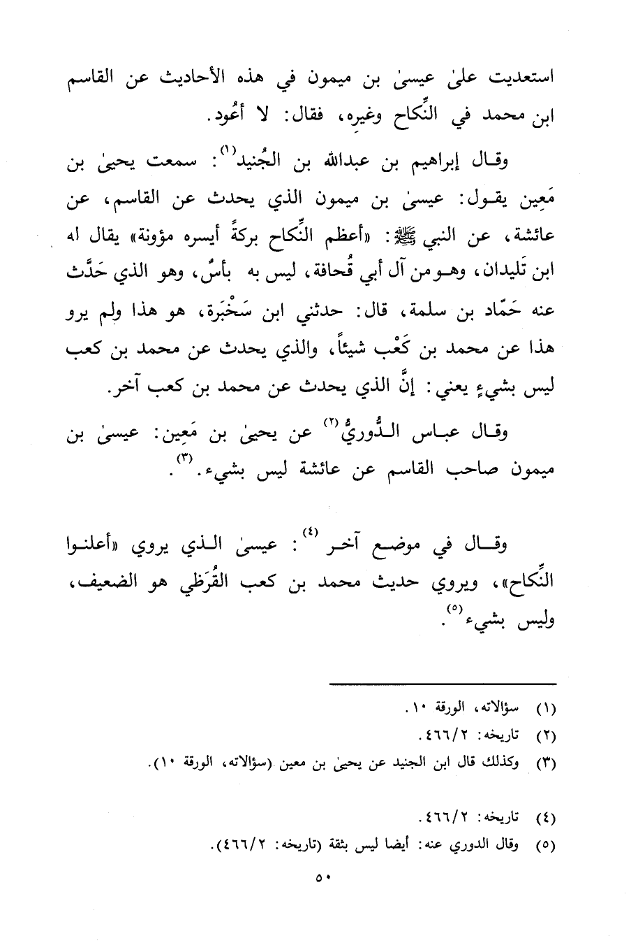 (3) وكذلك قال ابن الجنيد عَنْ يحيى بْن مَعِين (سؤالاته، الورقة 10) .