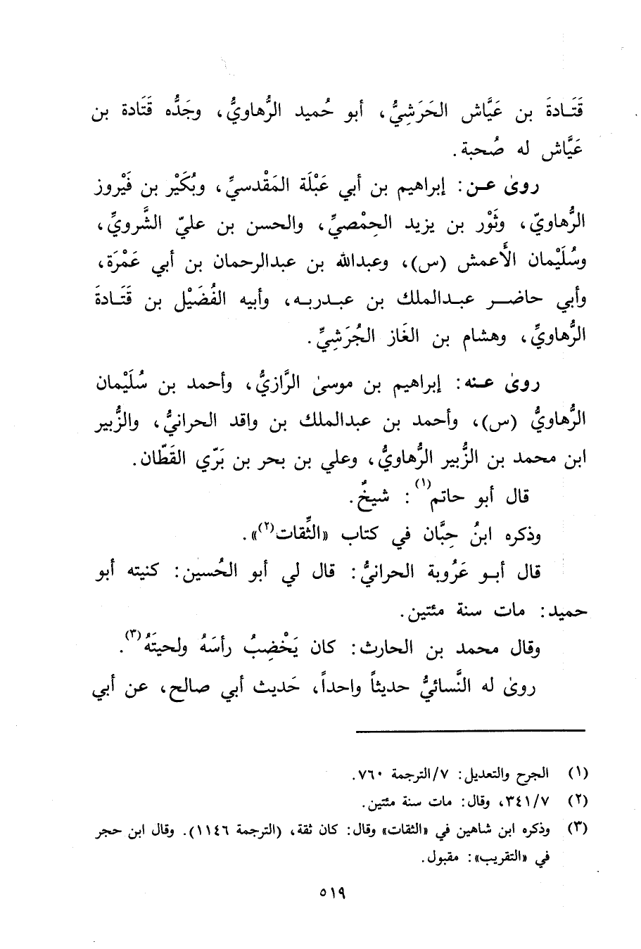 (1) الجرح والتعديل: 7 / الترجمة 760.