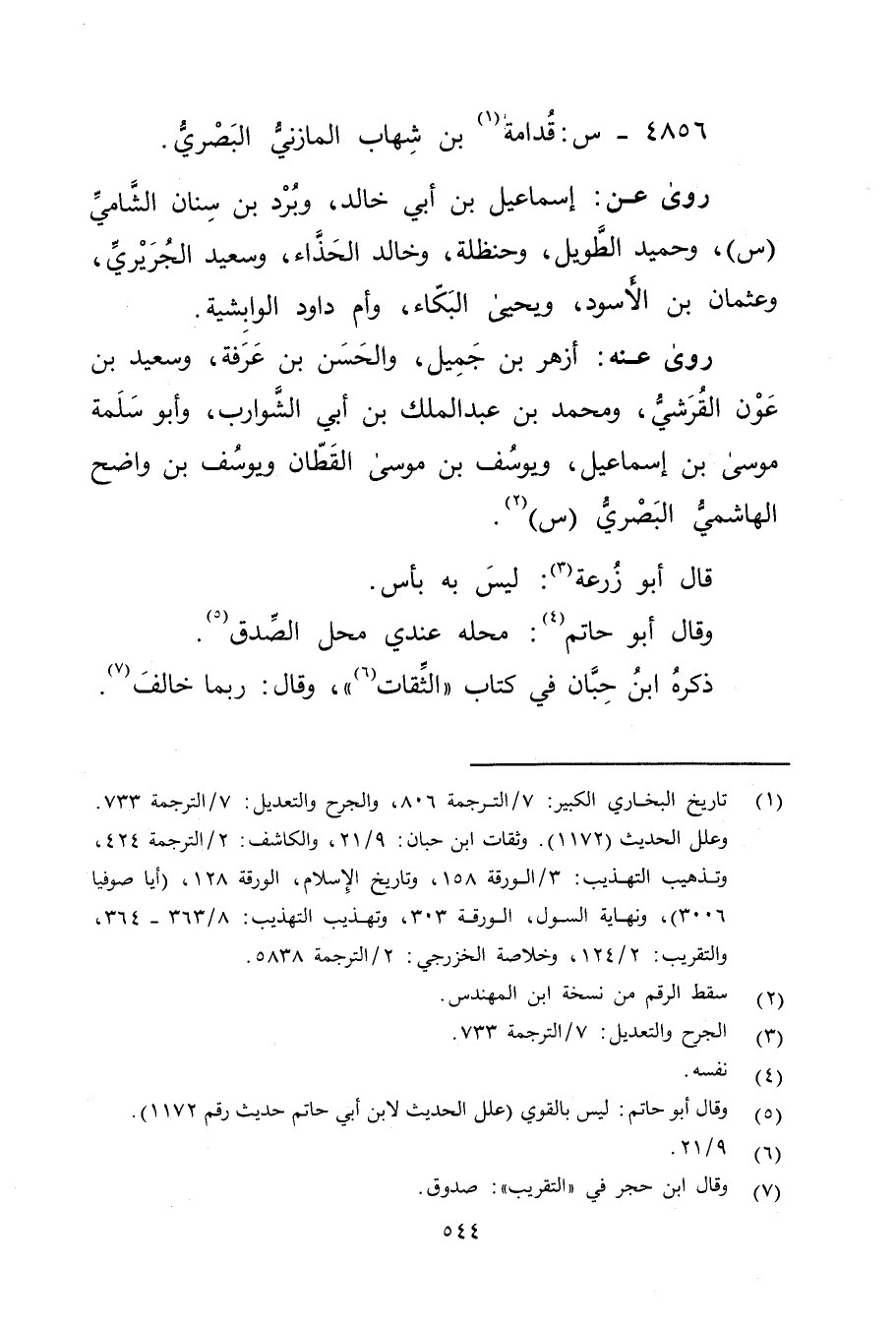 4856 - س: قدامة بن شهاب المازني البَصْرِيّ (1) .