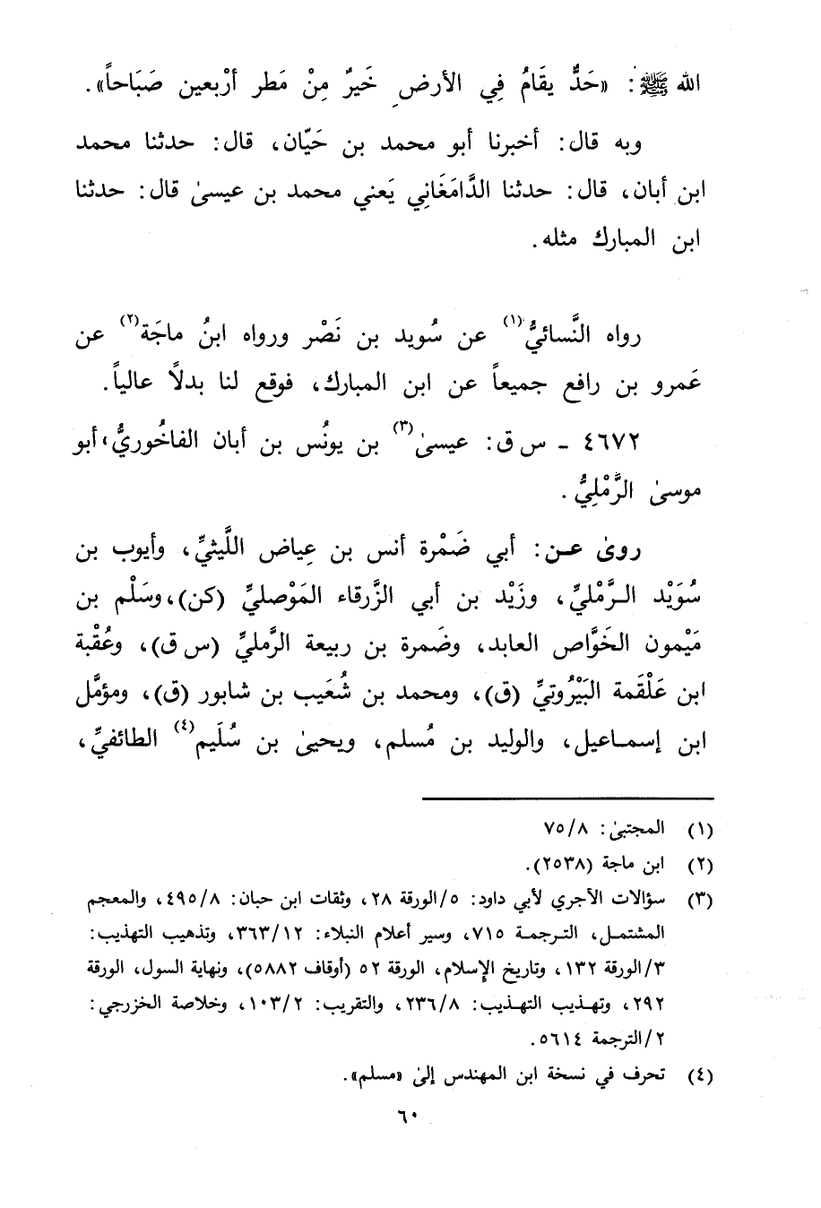رواه النَّسَائي (1) عَنْ سويد بْن نصر ورواه ابْنُ مَاجَهْ (2) عن عَمْرو بْنِ رافع جميعا عَنِ ابْن المبارك، فوقع لنا بدلا عاليا.