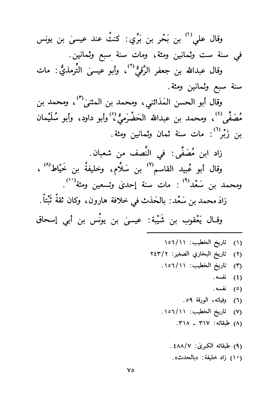 (1) تاريخ الخطيب: 11 / 156 (2) تاريخ البخاري الصغير: 2 / 243 (3) تاريخ الخطيب: 11 / 156.
