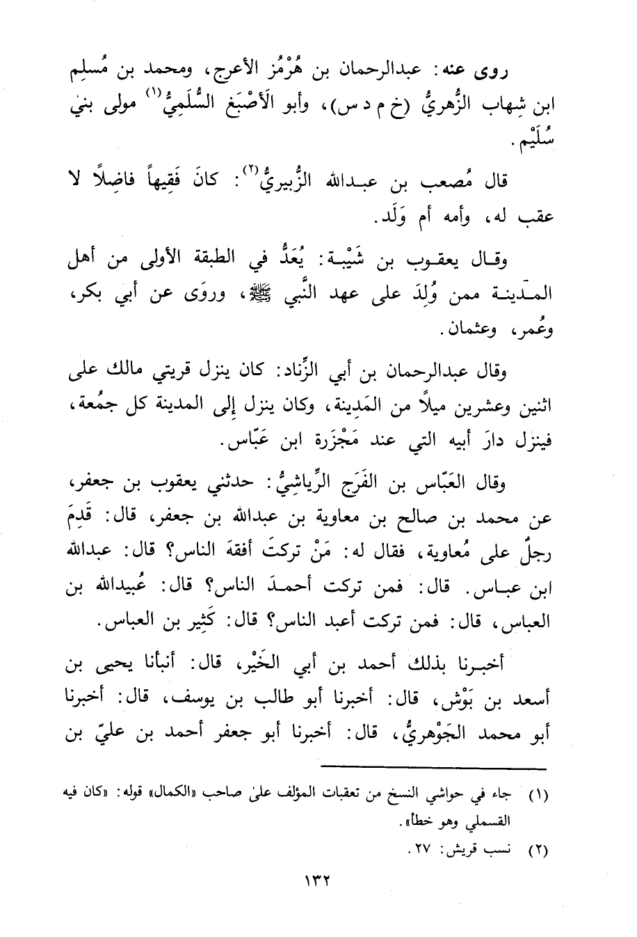 قال مصعب بْن عَبد اللَّهِ الزُّبَيْرِيّ (2) : كَانَ فقيها فاضلا لا عقب له، وأمه أم ولد.