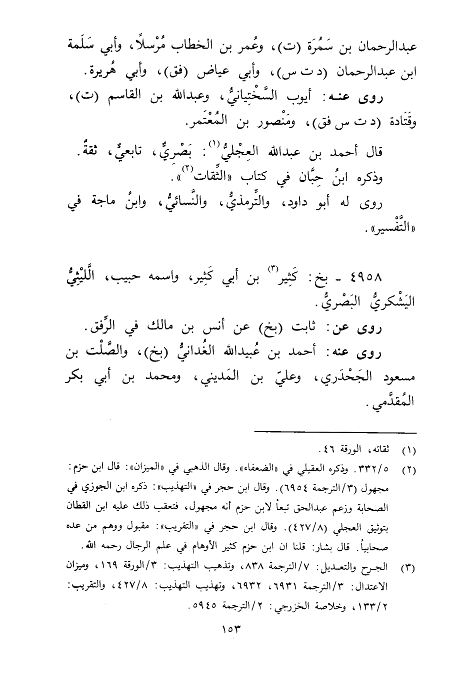 4958 - بخ: كَثِير بن أَبي كثير (3) ، واسمه حبيب، الليثي اليشكري البَصْرِيّ.
