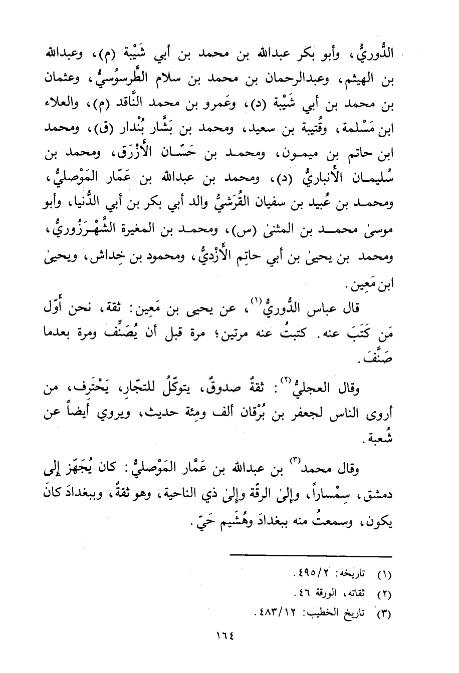 وَقَال مُحَمَّد (3) بْن عَبد اللَّهِ بْن عمار الْمَوْصِلِيّ: كَانَ يجهز إِلَى دمشق، سمسارا، وإلى الرقة وإلى ذي الناحية، وهُوَ ثقة، وببغداد كَانَ يكون، وسمعت منه ببغداد وهشيم حي.
