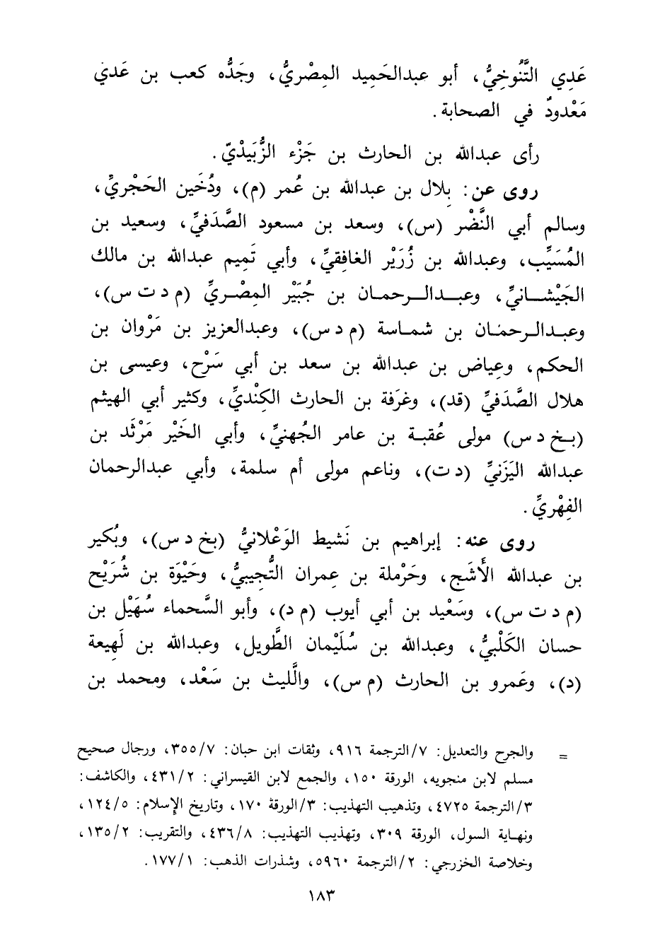 رأى عَبد الله بْن الحارث بْن جزء الزبيدي.