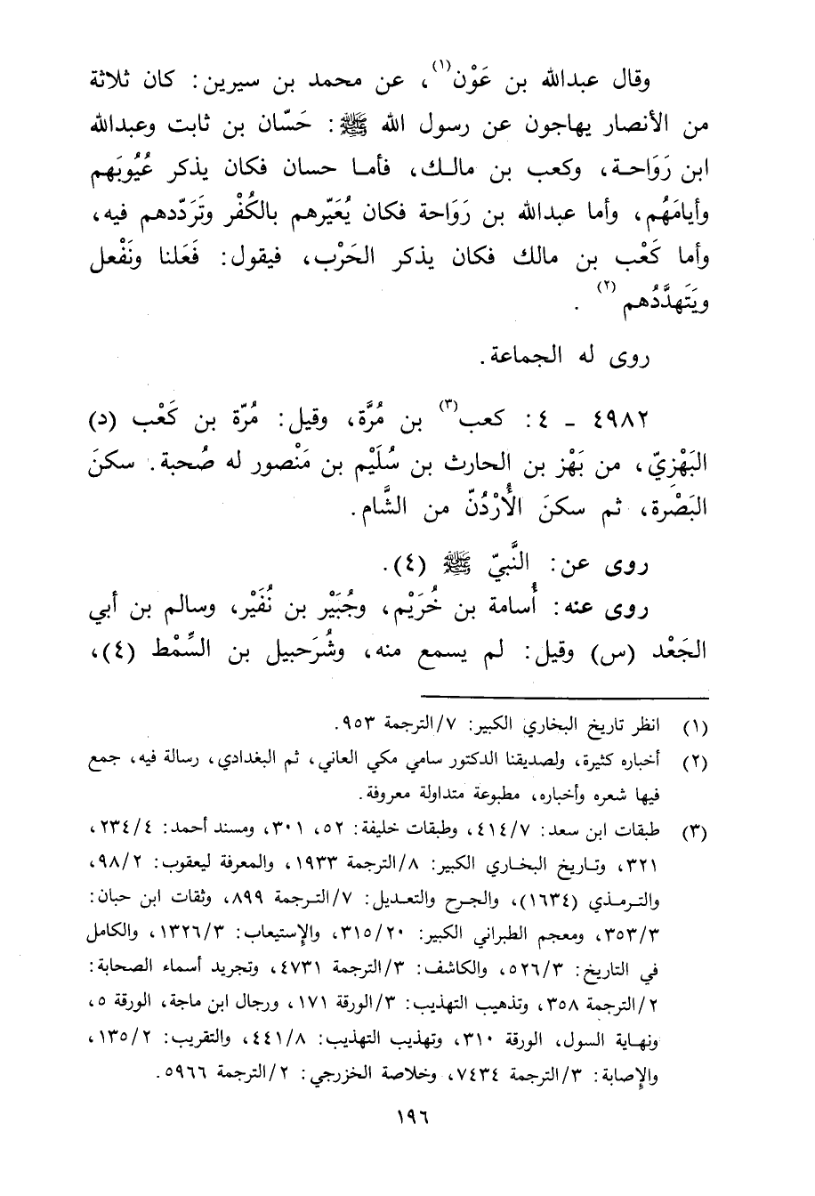 4982 - 4: كَعْب بن مُرَّةَ (3) ، وقيل: مرة بْن كَعْب (د) البهزي، من بهز بْن الْحَارِث بْن سُلَيْم بْن مَنْصُور له صحبة. سكن البصرة، ثُمَّ سكن الأردن من الشام.