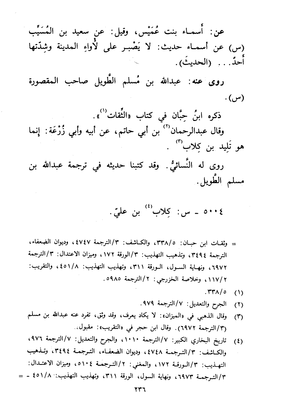 (3) وَقَال الذهبي في "الميزان ": لا يكاد يعرف، وقد وثق، تفرد عنه عَبد الله بن مسلم (3 / الترجمة 6972) . وَقَال ابن حجر في "التقريب": مقبول.