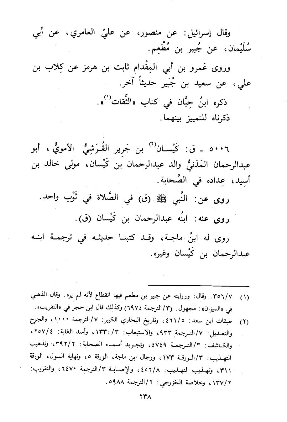 5006 - ق: كيسان بن جَرِير الْقُرَشِي الأُمَوِي (2) ، أَبُو عَبْد الرحمن الْمَدَنِيّ والد عَبْد الرَّحْمَنِ بْن كيسان، مولى خَالِد بْن أسيد، عداده فِي الصحابة.