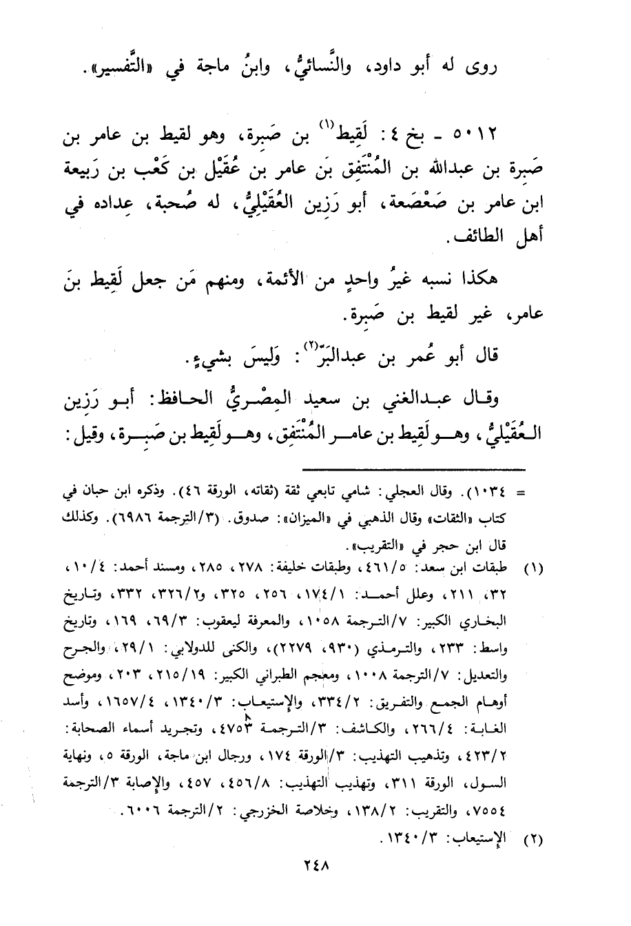 5012 - بخ 4: لقيط بن صبرة (1) ، وهُوَ لقيط بْن عَامِر بْن صبرة بْن عَبد اللَّهِ بْن المنتفق بْن عَامِر بْن عقيل بْن كعب بن ربيعة ابن عَامِر بْن صعصعة، أَبُو رزين العقيلي، لهُ صُحبَةٌ، عداده في أهل الطائف.
