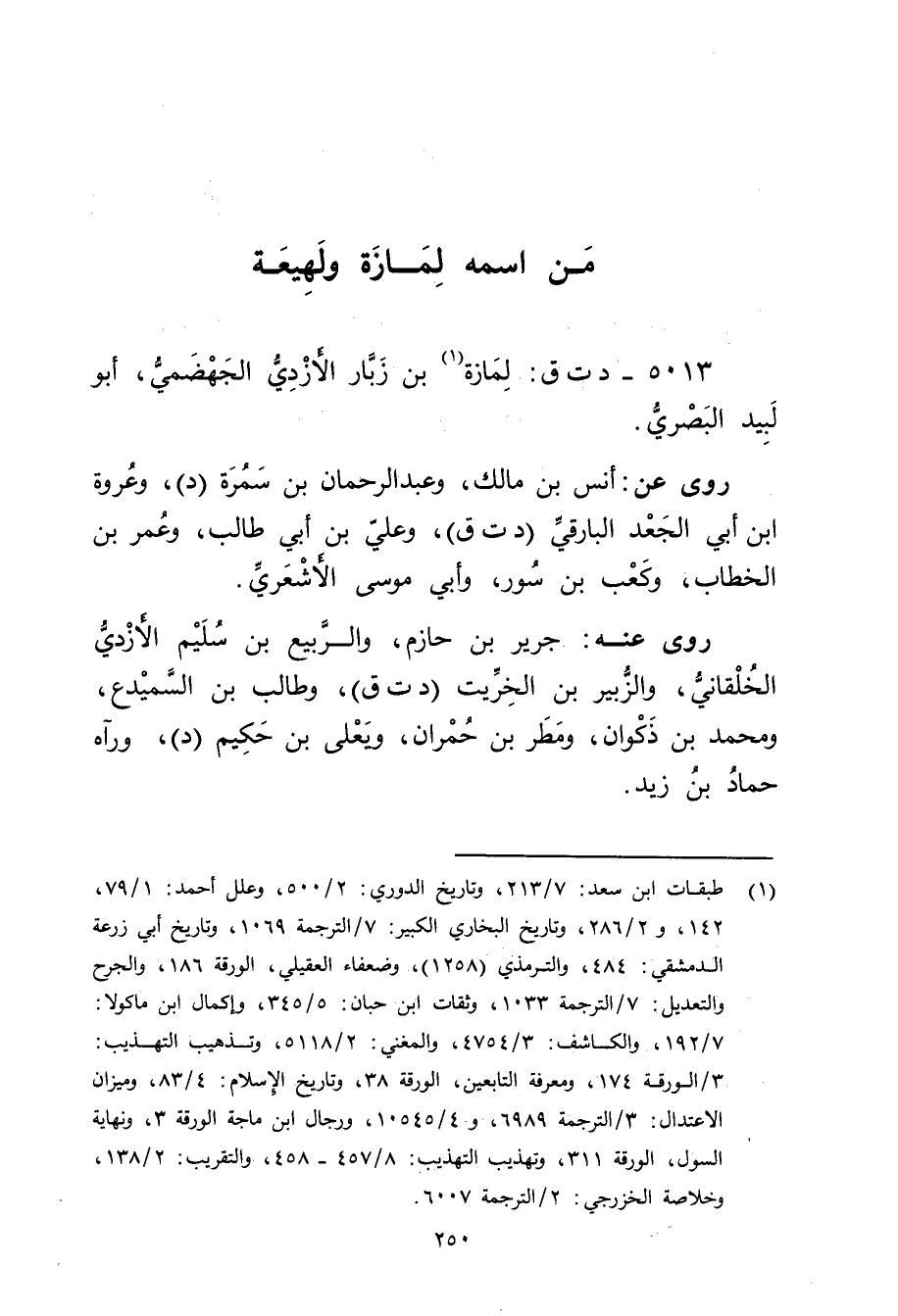 5013 - د ت ق: لمازة بن زبار الأَزْدِيّ الجهضمي (1) ، أَبُو لبيد البَصْرِيّ.