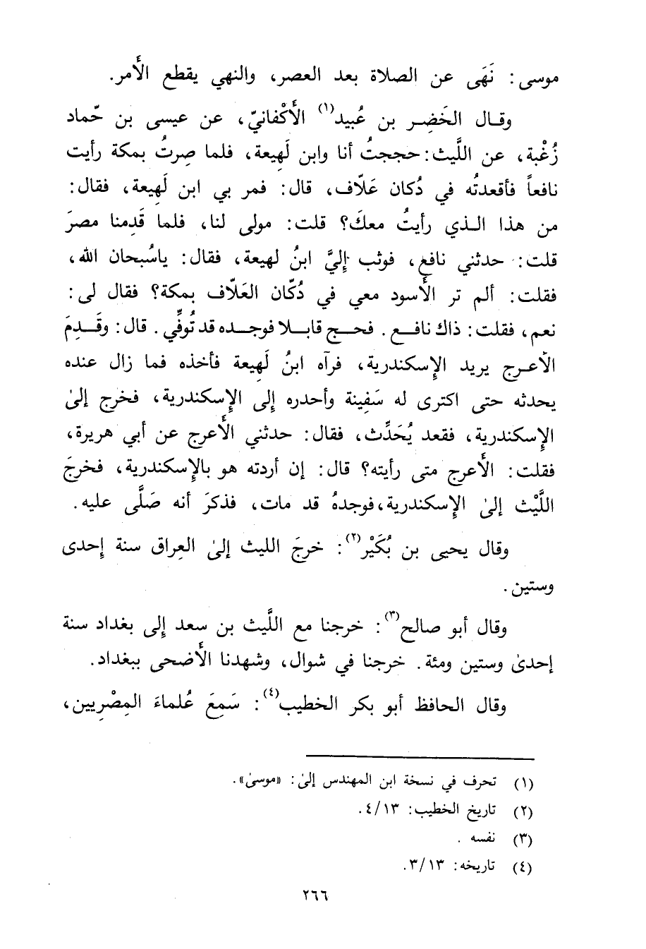 وَقَال الْحَافِظ أَبُو بَكْر الخطيب (4) : سمع علماء المِصْرِيين،