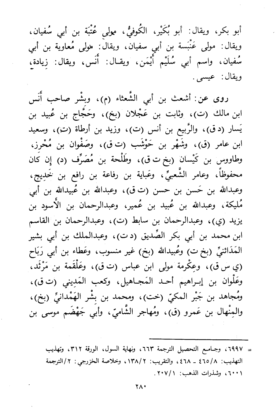 = 6997، وجامع التحصيل الترجمة 663، ونهاية السول، الورقة 312، وتهذيب التهذيب: 8 / 465 - 468، والتقريب: 2 / 138، وخلاصة الخزرجي: 2 / الترجمة 6001، وشذرات الذهب: 1 / 207.