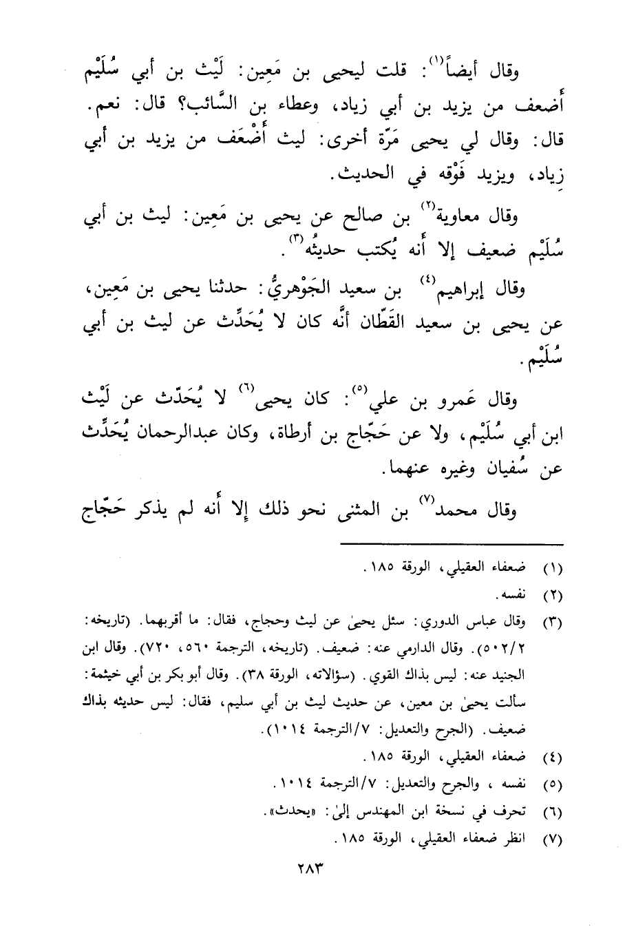 (7) انظر ضعفاء العقيلي، الورقة 185.