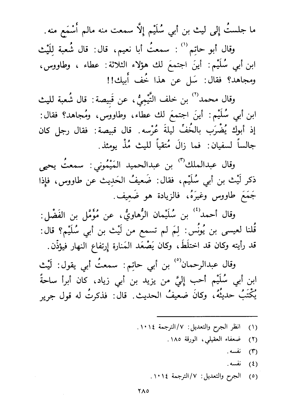 (5) الجرح والتعديل: 7 / الترجمة 1014.