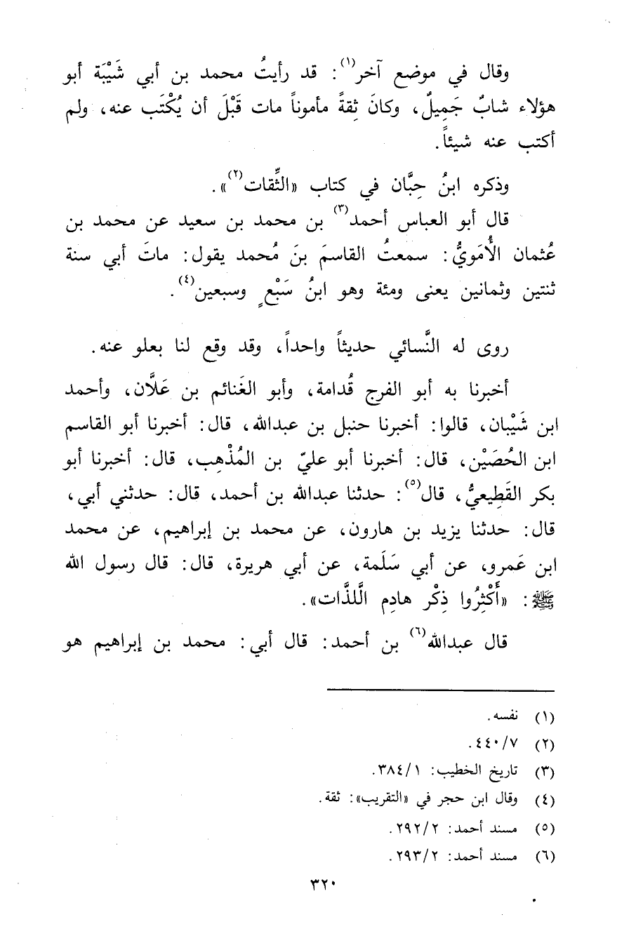 قال عَبد اللَّهِ (6) بْن أَحْمَد: قال أَبِي: مُحَمَّد بْن إبراهيم هو