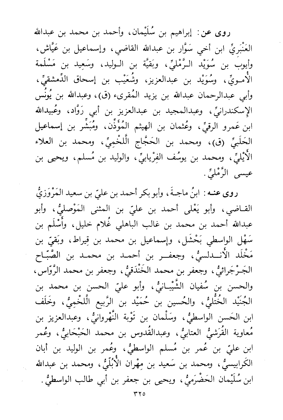 رَوَى عَنه: ابْن ماجه، وأَبُو بَكْرٍ أَحْمَدُ بْنُ عَلِيِّ بْنِ سَعِيد المروزي القاضي، وأَبُو يَعْلَى أَحْمَد بْن علي بْن المثنى الْمَوْصِلِيّ، وأَبُو عَبد اللَّهِ أَحْمَد بْن محمد بْن غالب الباهلي غلام خليل، وأسلم بْن سَهْل الواسطي بحشل، وإِسْمَاعِيل بْن مُحَمَّد بْن قيراط، وبقي بْن مخلد الأندلسي، وجعفر بْن أَحْمَد بْن مُحَمَّد بن الصباح الجرجرائي، وجعفر بْن مُحَمَّد الخندقي، وجعفر بْن مُحَمَّد الرواس، والحسن بْن سُفْيَان الشيباني، وأَبُو عَلِي الْحَسَن بْن مُحَمَّد بْن الجنيد الختلي، والحسين بْن حميد بْن الربيع اللخمي، وخلف ابن الْحَسَن الواسطي، وسلمان بْن توبه النهرواني، وعبد العزيز بْن مُعَاوِيَة القرشي العتابي، وعبد القدوس بْن محمد الحبحابي، وعُمَر ابن علي بْن عُمَر بْن مُسْلِم الواسطي، وعُمَر بْن الْوَلِيد بْن أبان الكرابيسي، ومُحَمَّد بْن سَعِيد بْن مهران الأبلي، ومُحَمَّد بْن عَبد الله ابن سُلَيْمان الحضرمي، ويحيى بْن جَعْفَر بْن أَبي طَالِب الواسطي.